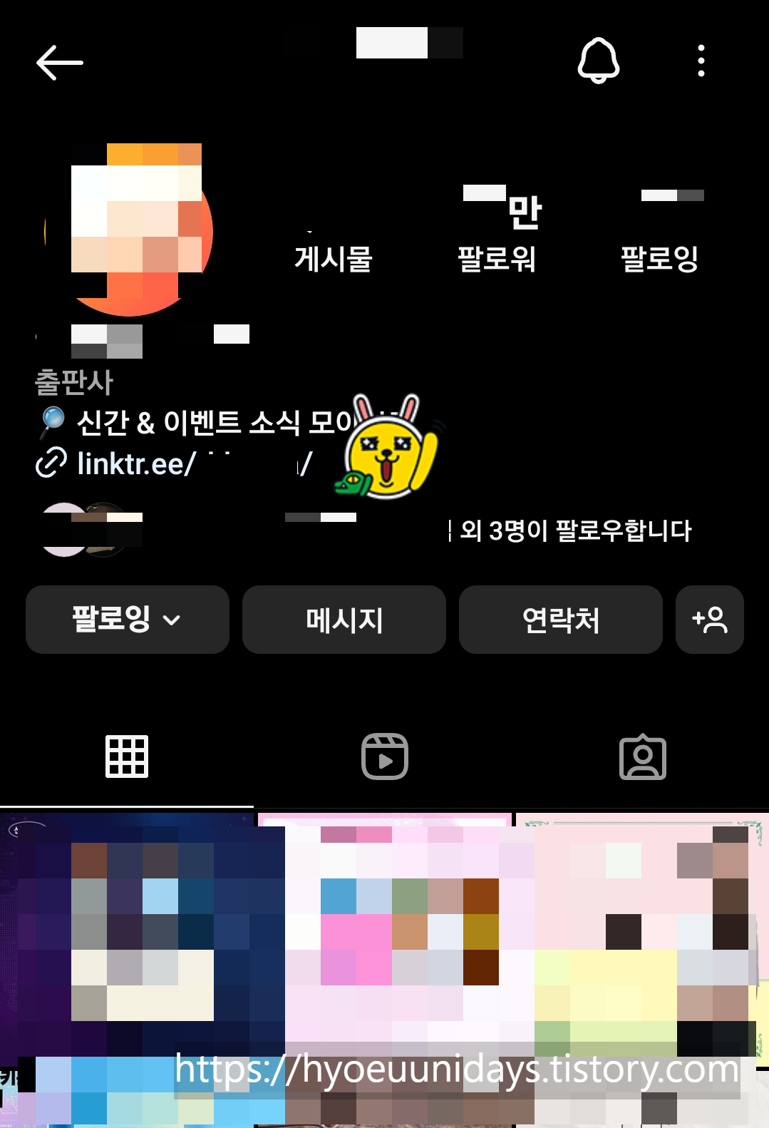 책에 있는 출판사를 인스타그램으로 검색하고 들어가서 위 이모티콘 옆에 있는 링크를 타고 들어가서 신청을 합니다.